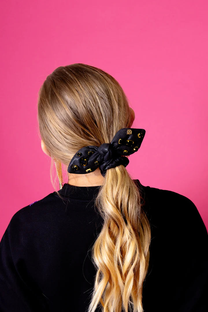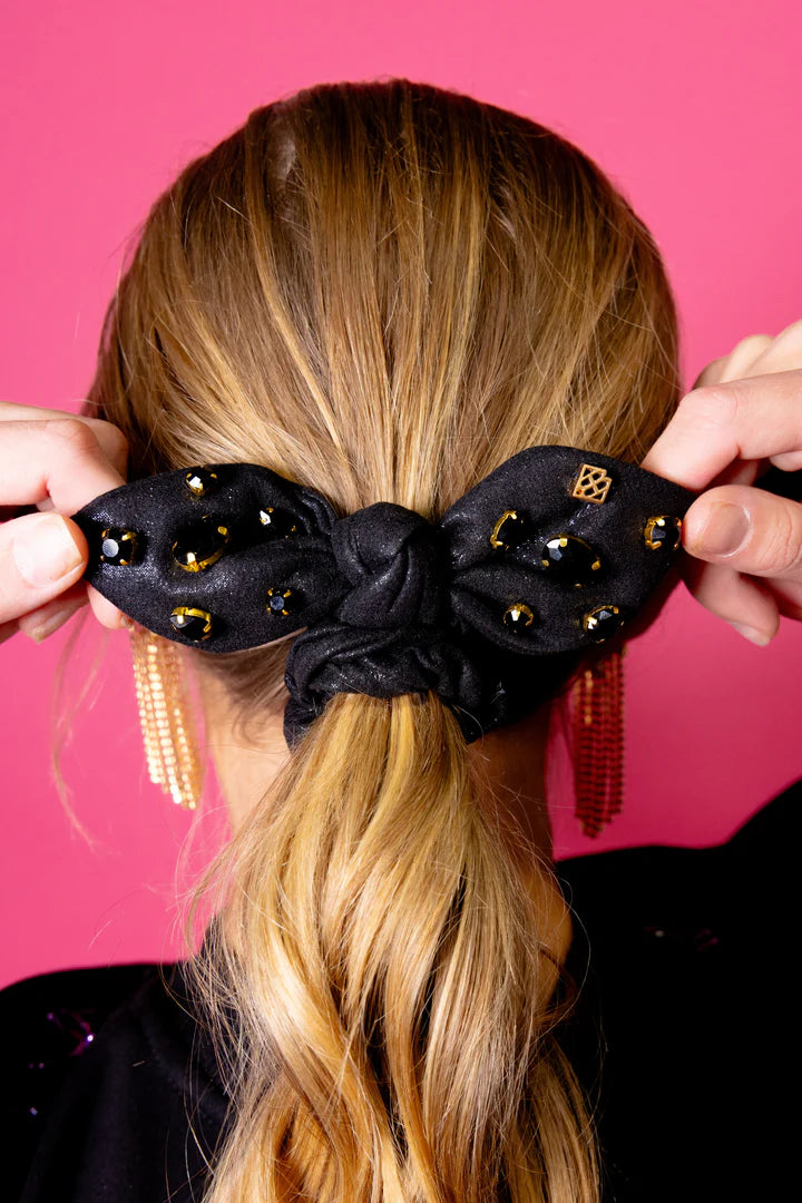 Shimmer Bow Scrunchie with Hand Sewn Crystals in Black