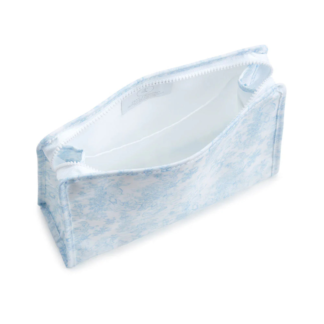 Our best-selling Roadies are our BFFs in the pouch world! Available in 3 sizes, our Large Roadie is made in a cotton gingham with a thin Eco-friendly matte coating, an inside slip pocket and exterior snap open zip tabs for a wider opening and an easier access.