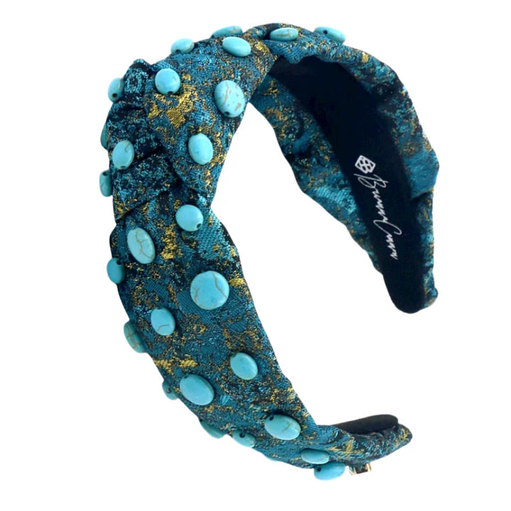 - Adult Size Turquoise & Gold Headband with Hand-Sewn Turquoise Stones