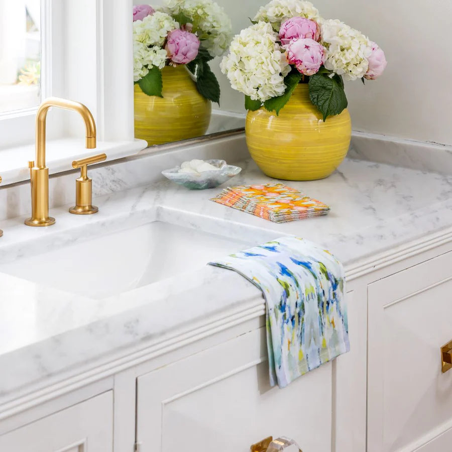 Perfect for the kitchen or the powder room, our dainty tea towels provide a delicate balance of functionality and flair. An artistic accent, a hand towel, or an easy cleanup!